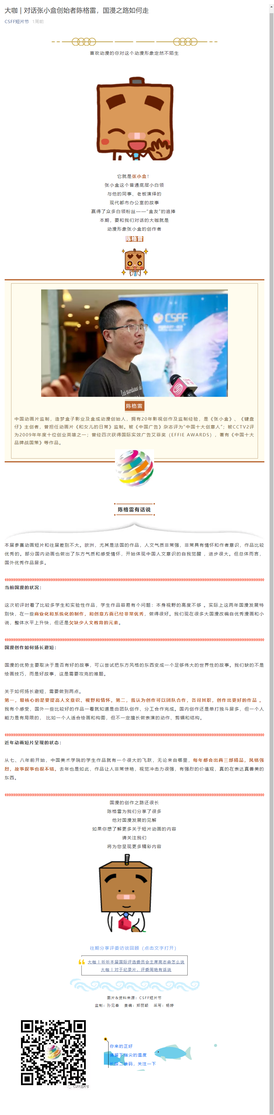 大咖 | 对话张小盒创始者陈格雷,国漫之路如何走